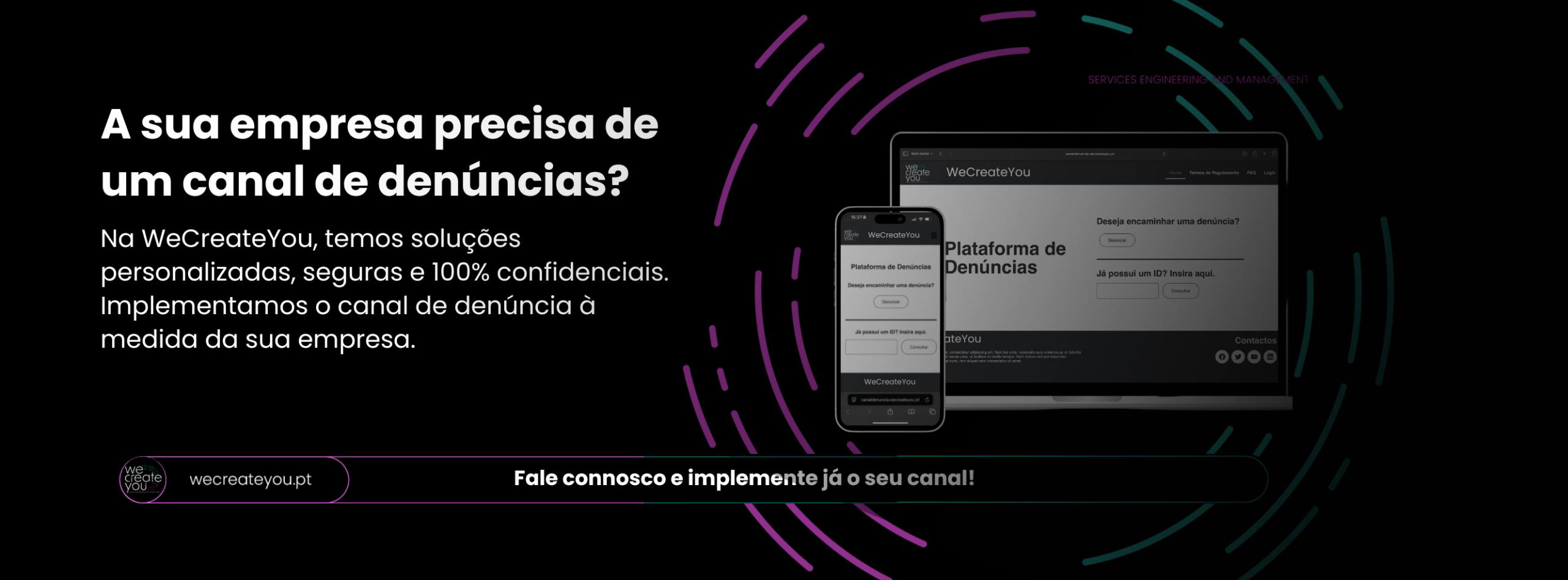 Desde 2023, todas as empresas com 50 ou mais colaboradores em Portugal são obrigadas a ter um Canal de Denúncias interno. A WeCreateYou oferece-lhe uma solução simples, segura e em conformidade com a lei — para que a sua empresa esteja protegida e a sua equipa confie no processo.